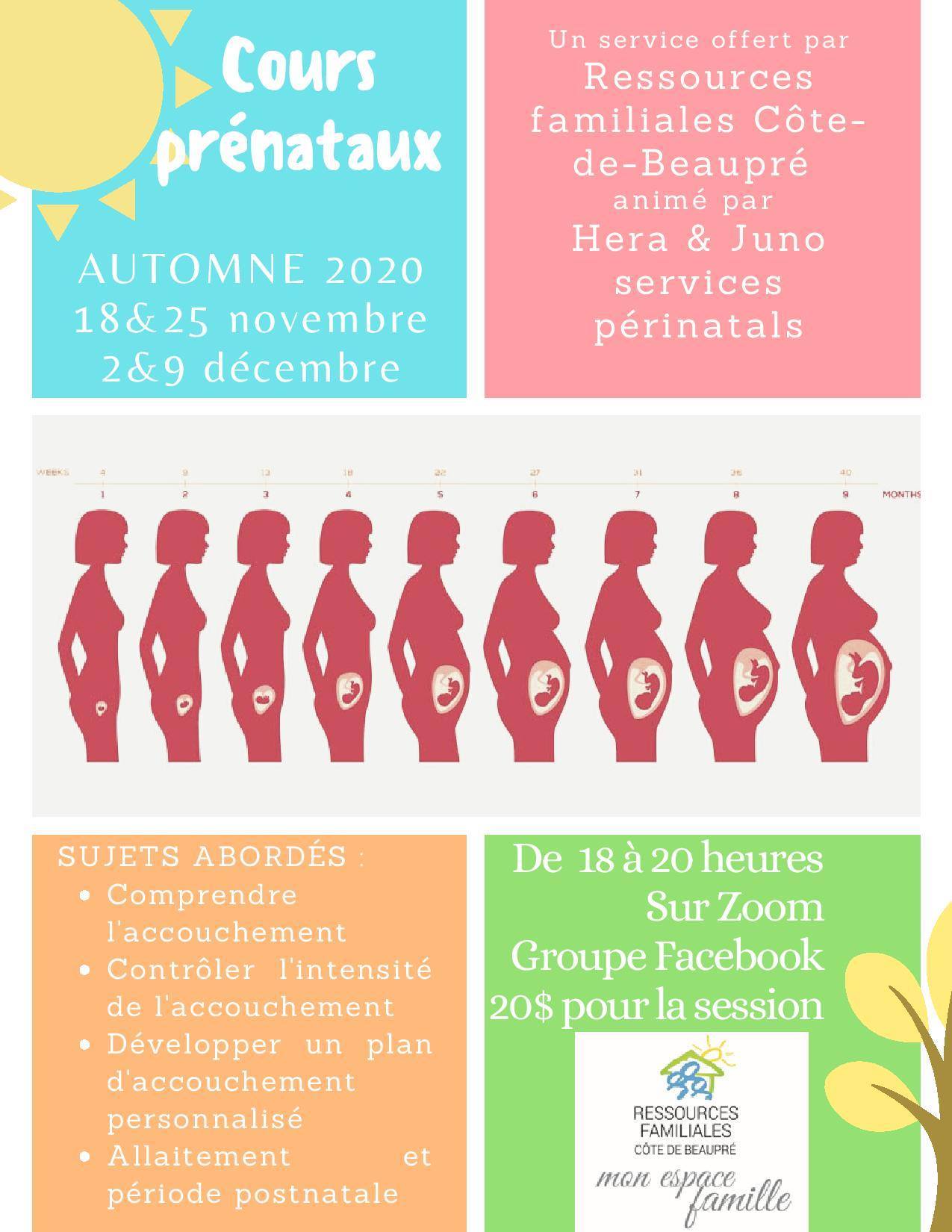 Ressources familiales Côte-de-Beaupré offrira, dès le 18 novembre 2020, une série de cours prénataux animés par Camille Nadeau, propriétaire et accompagnante formée de Hera & Juno services périnatals.